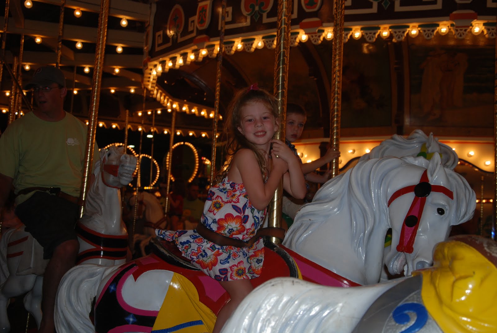 As the following pictures show... we had lots of fun on the rides every night! A few rides every night kept things under control. Rather than rides all in one night we spread it out... RJ's favorite was the choo-choo rides, Morgan liked the train rides, the merry-go-round, and the car whip ride. She was happy for whatever rides she got to go on!!