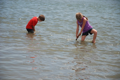 Next we went for a fish find. The kiddos and Bob drug nets through the water to try and catch animals. Bob caught lots of little fish and little shrimp. The kiddos only found broken seashells. In all Bob's excitement he forgot to take his cell phone and keys out of his pocket before submerging his body into the ocean. We will have to see the price of the damage... the keys worked (thank goodness), the phone... I am pretty sure it is dead. Ugh.