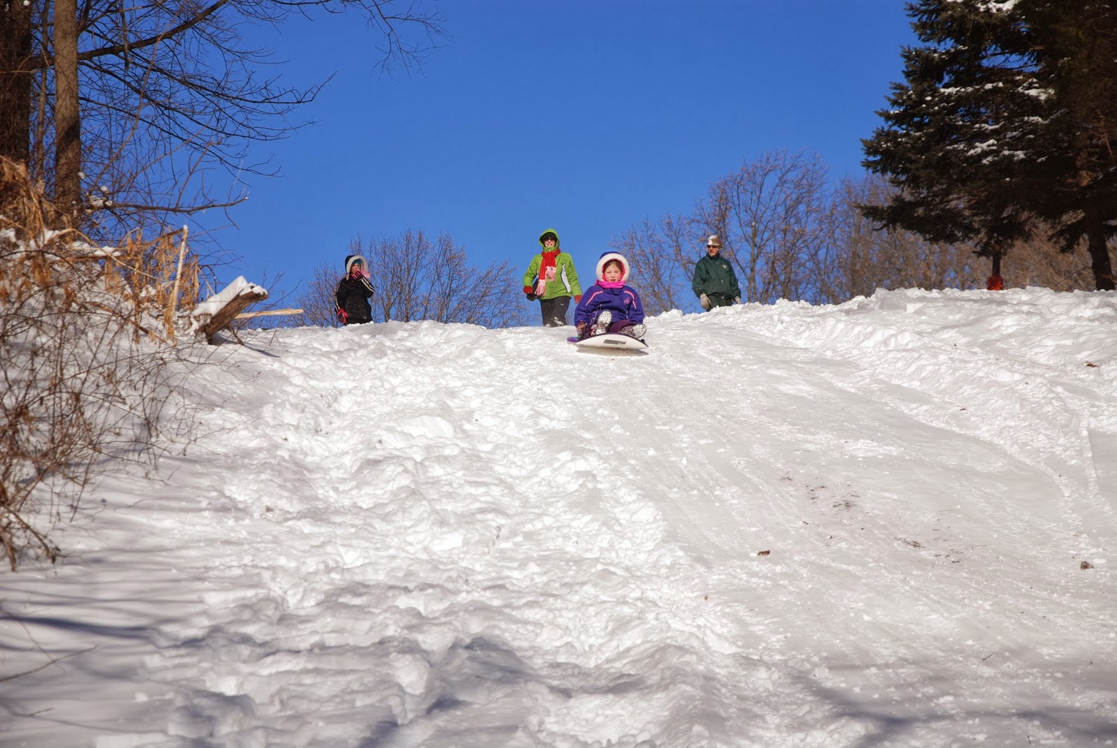 Although it was fun, it was also Freezing so we didn't last that long... oh... AND we had to walk all the way back up the hill too. Let me tell you... that is hard when you are bundled up like a marshmallow and carrying your sled!
