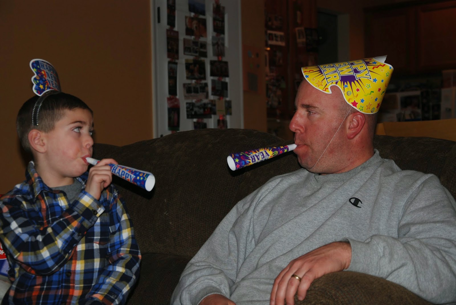 Around 9pm Daddy, RJ, and the doggies celebrated New Year's Eve! Unfortunately, RJ did not take a nap so he was unable to stay up until midnight! Morgan DID take a nap so she was able to stay up!!